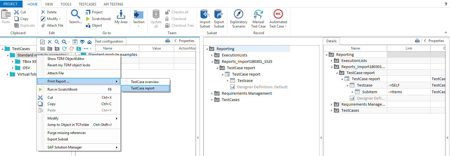 Sie können nun die geänderte Report Definition an jedem Testfall oder Testfallordner über den Eintrag im Kontextmenü Print Report ...->TestCase Report anwenden (siehe Kapitel "Reports drucken").