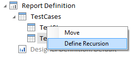 Da Testschrittordner Testschritte oder weitere Testschrittordner enthalten können, möchten Sie in diesem Fall eine Rekursion verwenden. Durch die Verwendung einer rekursiven Struktur müssen Sie nicht für jeden einzelnen Schritt eine Dataset Definition definieren. Führen Sie die folgenden Schritte aus, um Ihren Report zu erstellen: