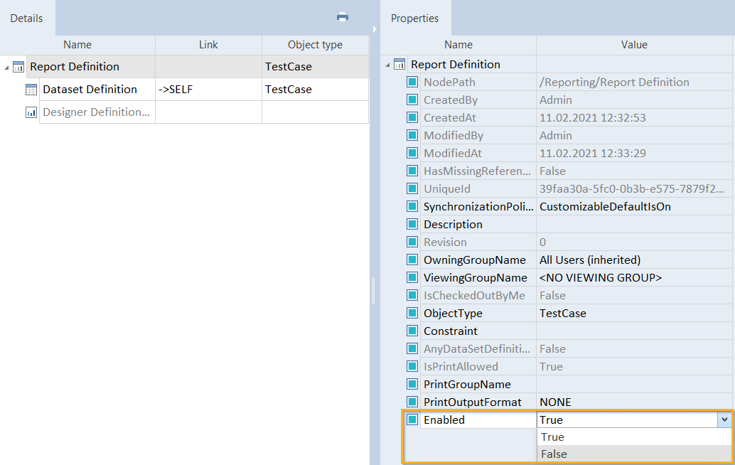 Deaktivieren Sie eine Reportdefinition, wenn Sie nicht möchten, dass sie weiterhin im Kontextmenü Print Report ... verfügbar ist. Führen Sie hierzu die folgenden Schritte aus: