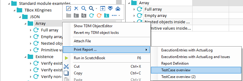 Klicken Sie mit der rechten Maustaste auf das Objekt, für das Sie einen Report drucken möchten.