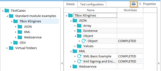 Sie können Ihre aktuelle Ansicht des Tosca Commanders drucken, indem Sie auf das Symbol