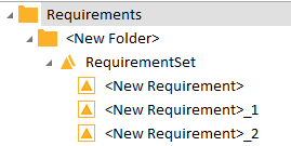Ordner können Unterordner enthalten. Innerhalb eines Ordners werden Anforderungen in Anforderungs-Sets organisiert.