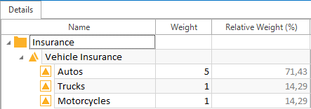 Einige Anforderungen bergen höhere Geschäftsrisiken bei einem Fehlschlag als andere. Wenn eine Kfz-Versicherung zum Beispiel den größten Teil ihres Geschäfts mit Kfz-Versicherungen und nur wenige Geschäfte mit Lkw- und Motorradversicherungen abschließt, kann sie ihre Anforderungen gewichten, um dies widerzuspiegeln.
