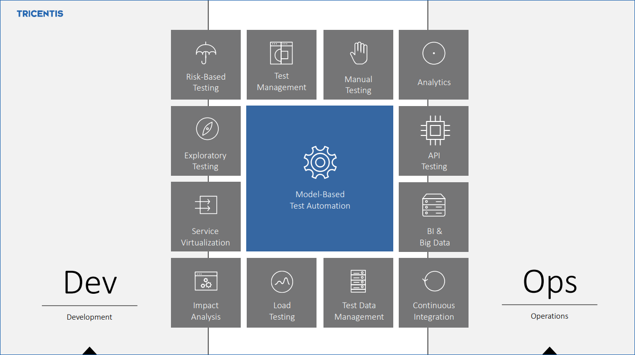 Tricentis Tosca ist ein One-Stop-Shop. Es stellt Ihnen die Werkzeuge für folgende Aktionen zur Verfügung: