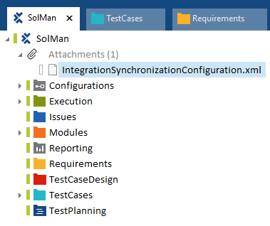 Die Datei IntegrationSynchronizationConfiguration.xml erscheint im Abschnitt Attachments des Projektwurzelelements. Sie müssen diese Datei ändern müssen, um die Synchronisation zu konfigurieren.