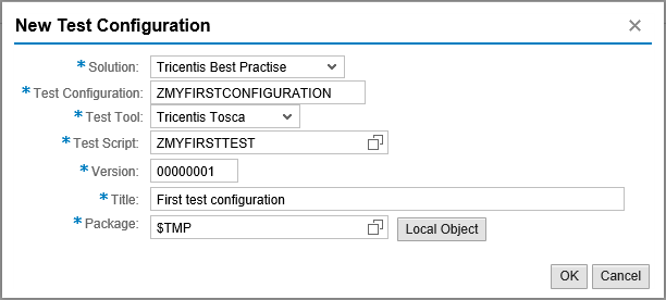 Selektieren Sie, wo die Testkonfiguration gespeichert wird. Klicken Sie auf Lokales Objekt, um die Testkonfiguration als lokales Objekt zu speichern. |