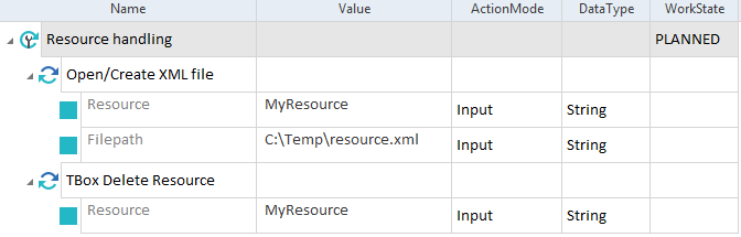 Der Ordner TBox Automation Tools->Resource Handling in der Standard-Untermenge enthält das Modul TBox Delete Resource.