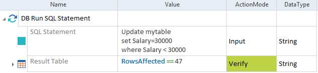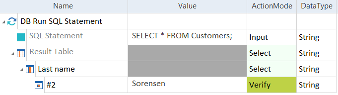 Geben Sie die Zelle in einer bestimmten Zeile an, die Sie steuern möchten. Für Informationen zum Steuern von Tabellen siehe Kapitel "Tabelle". Die Database Engine 3.0 unterstützt alle schreibgeschützten Aktionen zur Tabellensteuerung. Sie unterstützt nicht die Aktionen Input und Insert. |