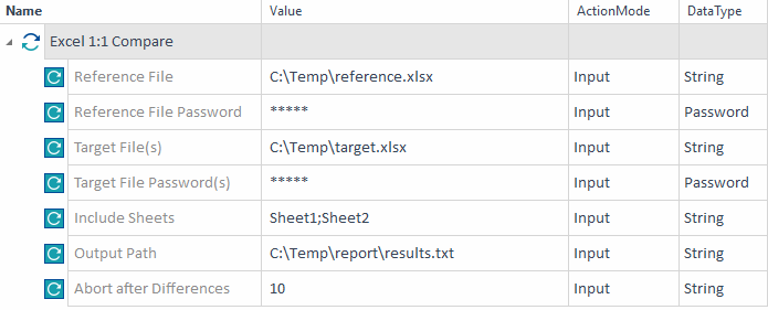 Wenn Ihre Excel-Dateien mehrere Datenblätter haben, können Sie festlegen, welche Blätter der Reference File Sie für den Vergleich verwenden möchten. Geben Sie dazu die Blattnamen durch Semikolon (;) getrennt ein. Um alle Blätter zu vergleichen, lassen Sie diesen Wert leer. |