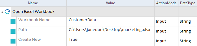 Das Modul Open Excel Workbook ermöglicht es Ihnen, eine Excel-Datei zu öffnen, d. h. eine Excel-Arbeitsmappe. Jede Arbeitsmappe kann mehrere Arbeitsblätter enthalten.