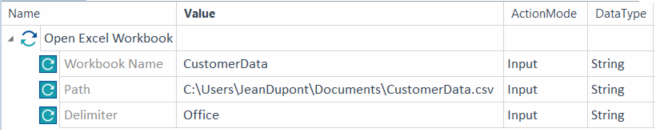 Das Modul Open Excel Workbook besitzt die folgenden Modulattribute: