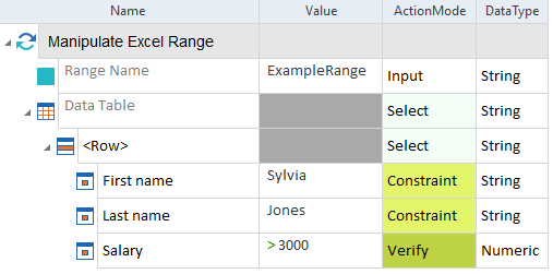 Dann führt die Engine eine Verifikation durch. In dieser Zeile sollte der Wert der Zelle in der Spalte Salary größer als 3000 sein. Excel-Daten steuern |