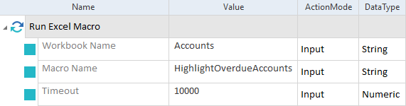 Das Modul Run Excel Macro ermöglicht es Ihnen, bestehende Microsoft Excel-Makros in einer Excel-Datei auszuführen. Informationen zu Microsoft Excel-Makros finden Sie in der Microsoft Excel-Dokumentation.