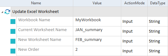 Mit dem Modul Update Excel Worksheet können Sie ein Arbeitsblatt in einer vorhandenen Excel-Datei aktualisieren.