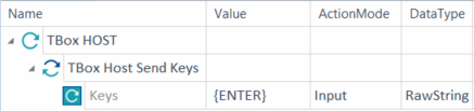 Taste(n), die Sie an die Applikation senden möchten. Verwenden Sie die Aktion Input. Standardmäßig ist der Datentyp RawString. Tosca sendet RawString-Daten genau so, wie sie in das zu testende System eingegeben wurden. Es besteht keine Notwendigkeit, Sonderzeichen zu maskieren. Um dynamische Ausdrücke zu verwenden, wählen Sie den Datentyp String aus. |