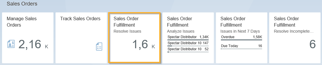 Kategorie Sales Orders mit Tile Sales Order Fulfillment Dazu geben Sie die folgenden Modulattribute an: