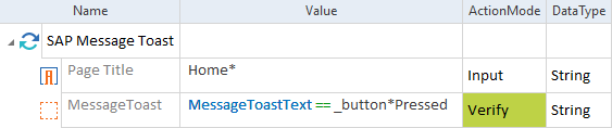 Mit dem Modul SAP Message Toast können Sie den Standardnamen des Message Toast oder seinen Text überprüfen (siehe Kapitel "SAP Fiori Message Toast").