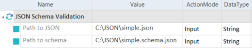 Mit dem Modul JSON Schema Validation können Sie eine JSON-Datei anhand einer JSON-Schemadatei validieren.