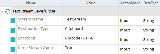 Mit dem Modul TextStream Save/Close können Sie einen TextStream schließen und optional seinen Inhalt an einem externen Ziel speichern.