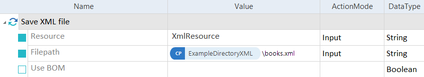 Mit dem Modul Save XML file können Sie die an der Ressource vorgenommenen Änderungen in die verbundene XML-Datei übertragen (siehe Kapitel " XML-Dateien speichern").