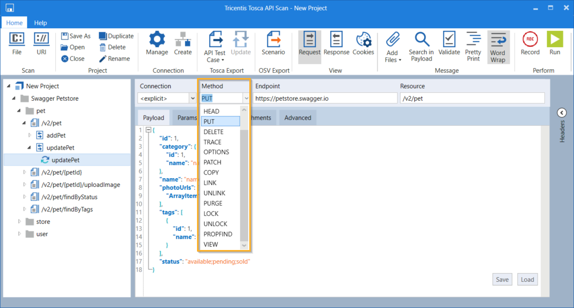 Dazu können Sie Werte manuell im API Scan oder im Reiter Technical View eines API-Moduls im Tosca Commander eingeben.