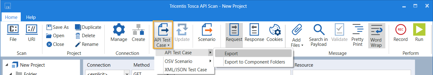 Sie können API Scan-Nachrichten in den Tosca Commander exportieren. Auf diese Weise können Sie API-Testfälle