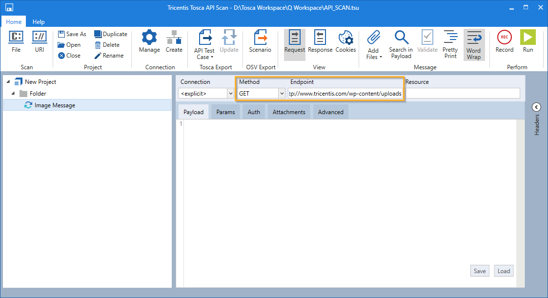 Erstellen Sie im Tricentis Tosca API Scan eine GET-Nachricht.