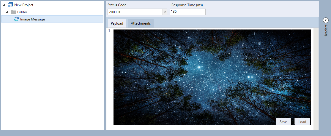 Tricentis Tosca API unterstützt den Empfang von Bildnachrichten. Das empfangene Bild wird im Reiter Payload angezeigt, wo Sie es auch speichern können.