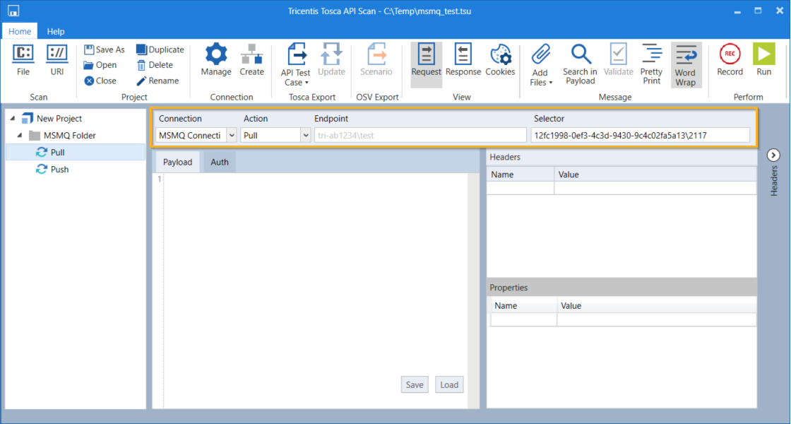 Run im Menü API Scan, um eine Nachricht per Pull aus der Warteschlange abzurufen.