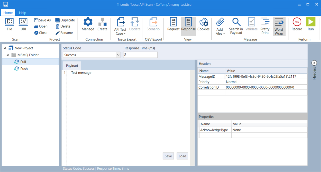 Die Response zeigt an, ob der MSMQ-Broker die Nachricht erfolgreich per Push in die Warteschlange verschoben hat.