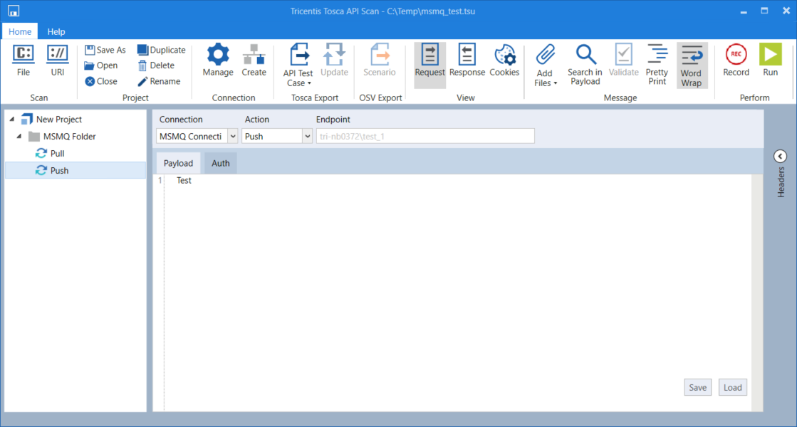 Der Tricentis Tosca API Scan ermöglicht es Ihnen, Nachrichten über eine Microsoft-Message-Queuing-(MSMQ)-Verbindung auszuführen. Eine MSMQ-Warteschlange speichert vorübergehend Nachrichten, die von einem oder mehreren Sendern gesendet und von einem oder mehreren Empfängern gelesen werden. Dadurch können verschiedene Systeme unabhängig voneinander kommunizieren, z. B. wenn eines von ihnen offline ist.