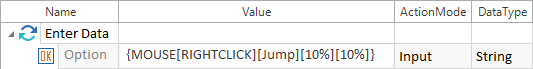 In diesem Beispiel führt Tosca einen Rechtsklick mit einem Offset von 10% horizontal und 10% vertikal auf die Schaltfläche Option aus: