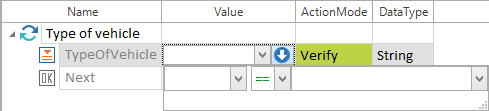 Wenn Sie die Aktion oder den Datentyp verändern, setzt Tosca automatisch den Standard-Operator. |