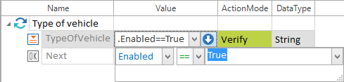 Definieren Sie in der Spalte Aktion als Wert Verify, WaitOn, Select oder Constraint.