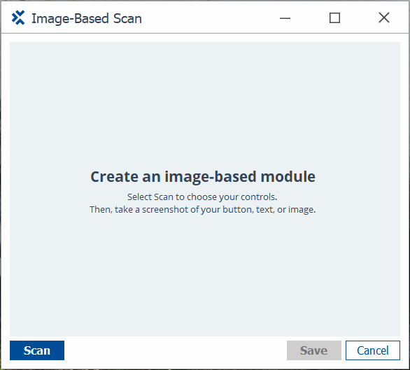Wählen Sie Scan, um das Control und den Screenshot zu erstellen. Der Image-Based Scan wird minimiert und der Mauszeiger in ein Fadenkreuz umgewandelt.