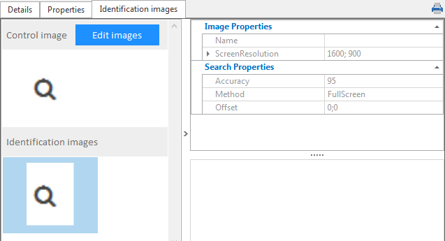 Ein bildbasiertes Control besitzt in der Detailansicht des Tosca Commander einen zusätzlichen Reiter mit dem Namen Identifizierungsbilder.