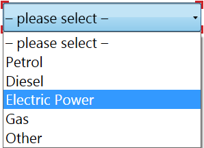 Um ein Aufklappmenü aufzuzeichnen, wählen Sie einen Wert aus der Dropdown-Liste aus.