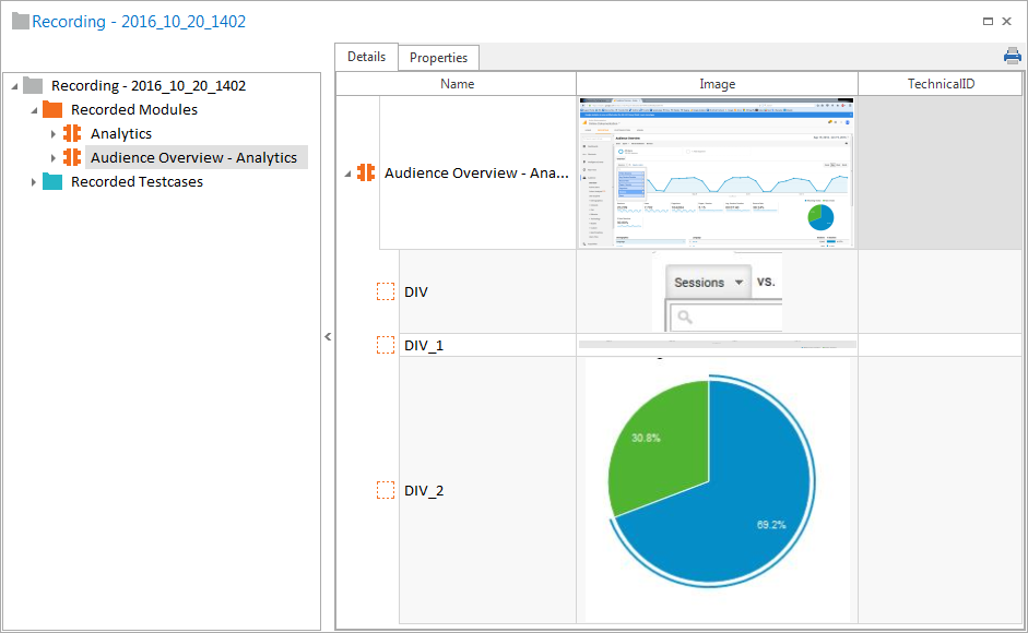 Um die Screenshots der aufgezeichneten Controls anzuzeigen, navigieren Sie zur Spalte Image von Modulattributen und Testschritten.