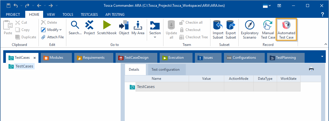 Um automatisierte Testfälle aufzuzeichnen, gehen Sie zum Menü Home und wählen Sie das Symbol