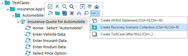 Klicken Sie mit der rechten Maustaste auf einen Testfallordner oder Testfall und wählen Sie in der Minisymbolleiste die Option Create Recovery Scenario Collection.