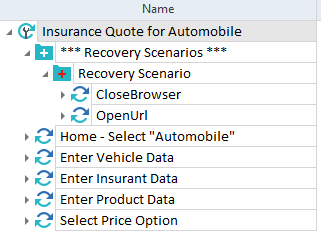 Zum Beispiel steuert der Testschritt Home - Select "Automobile" ein Control auf einer Webseite. Ein mögliches Recovery-Szenario könnte sein, den Browser-Tab zu schließen und wieder zu öffnen.