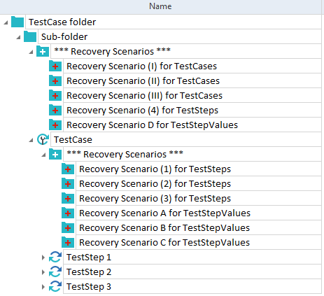 Sie erstellen Ihre Recovery-Szenarien im Bereich TestCases. Tricentis Tosca wendet sie während der Ausführung automatisch an (siehe Kapitel " Mit Engines 3.0 Recovery arbeiten"). Ein Recovery-Szenario ist erfolgreich, wenn alle darin enthaltenen Testschritte ein positives Ergebnis liefern.
