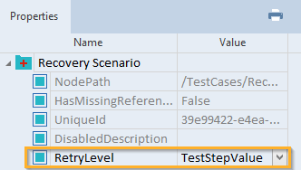 Recovery-Szenario mit einem RetryLevel für TestStepValues