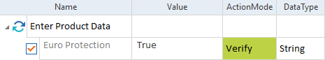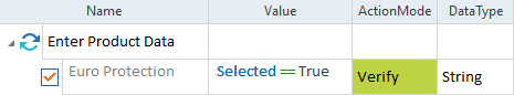 Sie können Aktionen wie folgt einsetzen. Wenn Sie keine Eigenschaft im Testschrittwert angeben, wird die Eigenschaft aus der Spalte Standardeigenschaft verwendet: