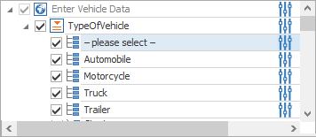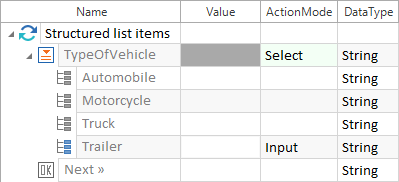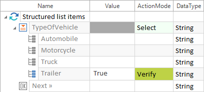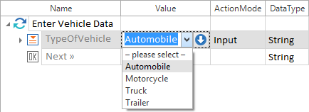 Im folgenden Beispiel verwendet Tosca den Listeneintrag Anhänger, um den gleichnamigen Combobox-Eintrag aus der Combobox Fahrzeugart auszuwählen.