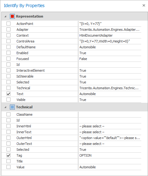 Folgende Eigenschaften können neben den allgemeinen Eigenschaften für einen Combobox-Eintrag überprüft werden:
