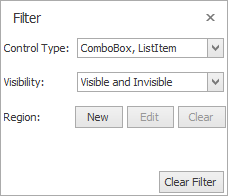 Wählen Sie im Fenster Filter die Control-Typen Combobox und ListItem aus. Zusätzlich wählen Sie die Option Visible and Invisible aus. Die einzelnen Listeneinträge werden in der Baumansicht angezeigt.