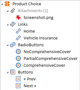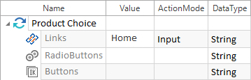 Links, Buttons und RadioButtons können in Tosca gruppiert werden (siehe Kapitel " Optionen für Module und Modulattribute").