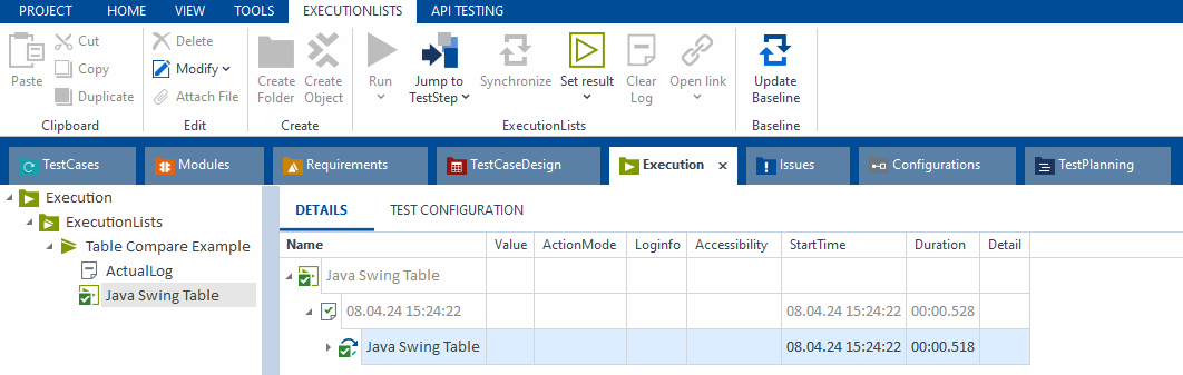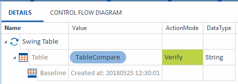 Bitte beachten Sie: Wenn die Einstellung EnableAutoGenerateBaseline aktiviert ist, zeigt ein Status Passed bei der ersten Ausführung eines Testschritts mit dem Wert {TableCompare} im Feld Value nur an, dass die Baseline erfolgreich erstellt wurde. Ein Vergleich der Daten wird in dieser Phase nicht durchgeführt.