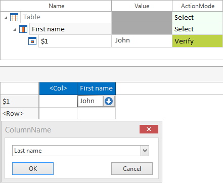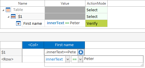 Der Tabellensteuerungs-Editor bietet eine tabellenartige Oberfläche, um Testschrittwerte von Tabellen-Controls zu ändern.
